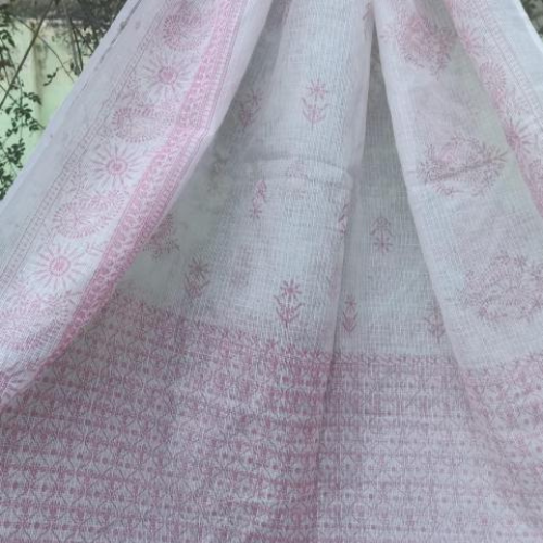 crafted from fine in Kota doria fabric with hand block printed fabric . Known for its lightweight,